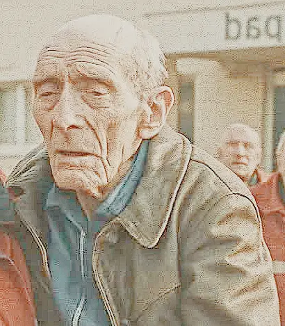 Люсиен медленно обернулся. Сначала — непонимание. Потом его взгляд зацепился за красные куртки. За нашивки. За знакомые лица, пусть и состарившиеся.
