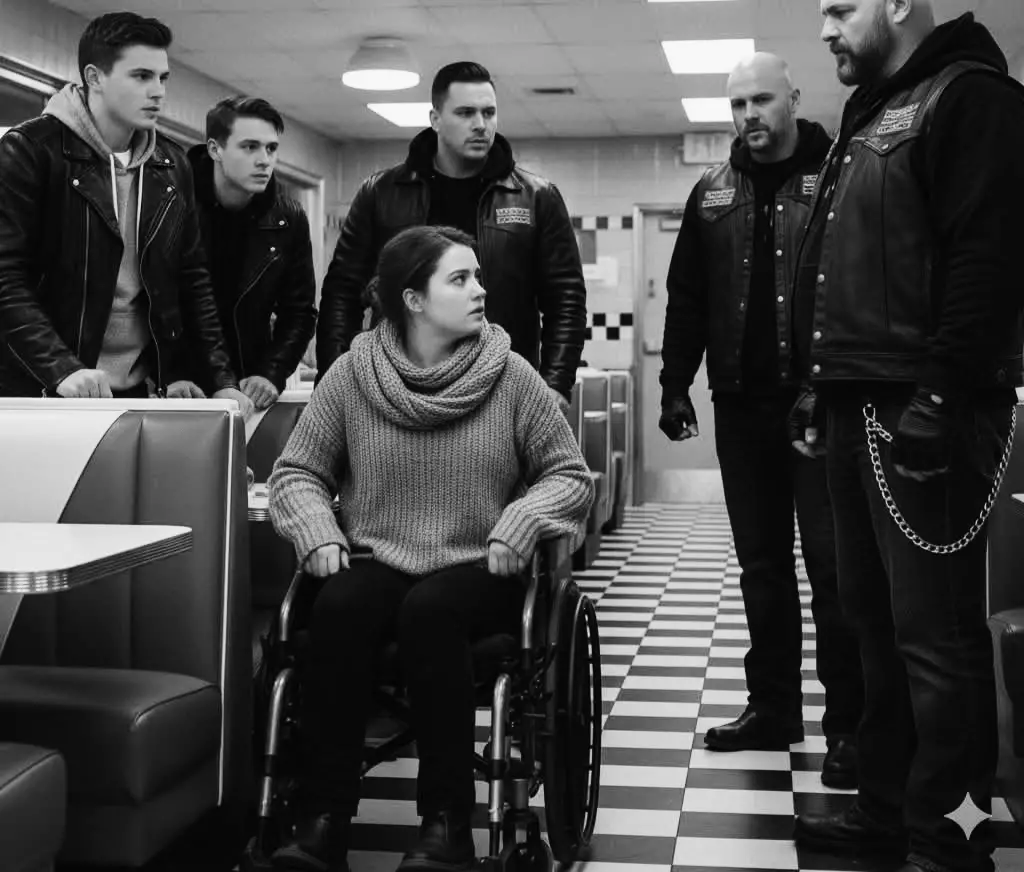 Они не искали конфликта. Их взгляд мгновенно остановился на Кларе, и воздух вокруг словно пропитался чувством справедливости. Весь зал ощутил перемену: невидимый поток защиты обвил пространство. Лидер группы — мужчина с сединой в бороде — спокойно подошёл к подросткам, которые издевались над девушкой.