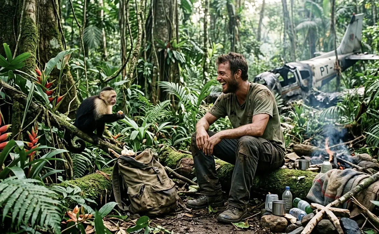 Когда я очнулся среди перевернутых обломков самолета, всё вокруг было похоже на хаотичный лабиринт из деревьев, лиан и странных звуков. Первое чувство — шок. Второе — ужас. А третье — лёгкий смех: мои ноги были заблокированы в странной позе, словно джунгли решили посмеяться надо мной.