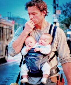 Соседи часто видели его: он возвращался домой, таща в одной руке пакет с продуктами, а на груди у него покачивались близнецы. Лицо — уставшее, осунувшееся, но в глазах — тихое, несгибаемое упрямство. Многие смотрели на него с жалостью. Немногие верили, что он справится.