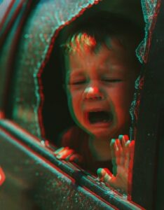 У обочины стояла серая машина. Ничего необычного — если бы не маленькое лицо за стеклом. Внутри, на заднем сиденье, сидел совсем крошечный мальчик. Его щёки были мокры от слёз, губы дрожали, а маленькие кулачки слабо стучали по окну. Он тяжело дышал, беспокойно ёрзал, будто ему не хватало воздуха.