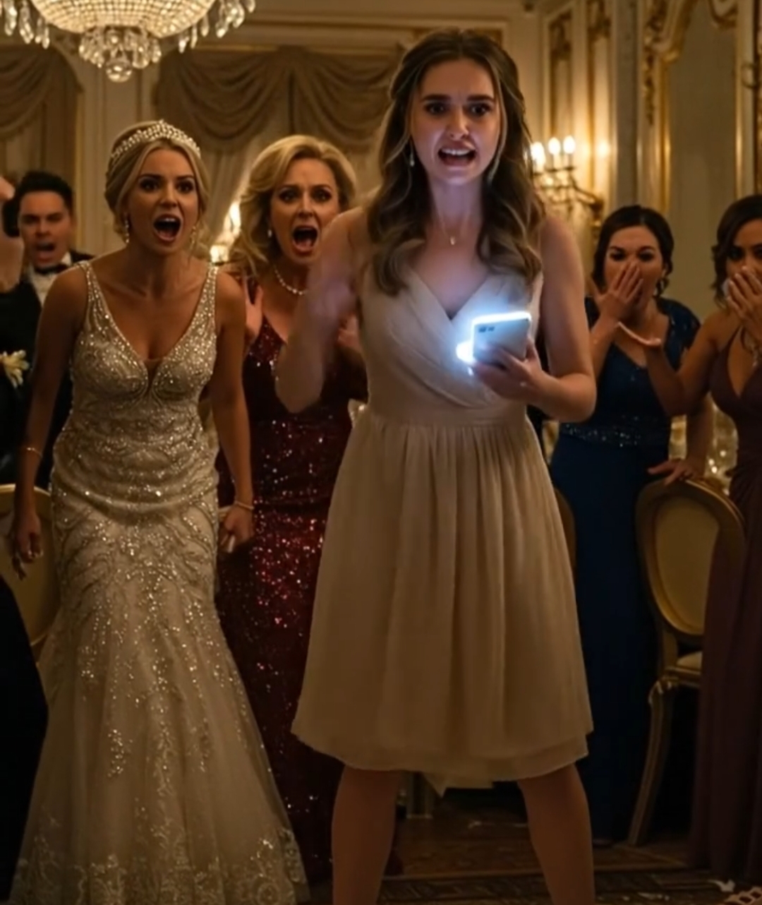 На секунду зал застыл, словно на фотографии. Золото, мрамор, хрусталь — всё превратилось в декорации для сцены, где наконец заговорила я.
