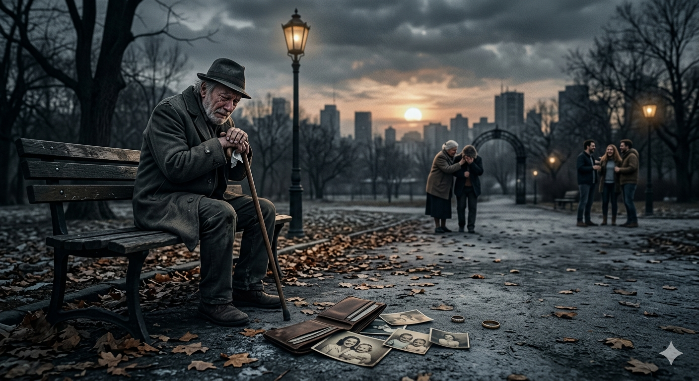 После того, как мужчина провёл несколько часов на скамейке в парке, скрывая лицо в руках, он медленно поднялся. Его глаза, привыкшие к темноте дождливого заката, начали различать светлую дорожку впереди. Он заметил семью, идущую по тропинке, смех ребёнка эхом отдавался в воздухе. Этот момент стал для него символом того, что жизнь продолжается, и что даже после самой тёмной бури появляется свет.