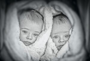 В коляске лежали два новорождённых — крошечные, завернутые в тонкие одеяльца. Они спали спокойно, словно весь этот мир ещё не успел причинить им боль.