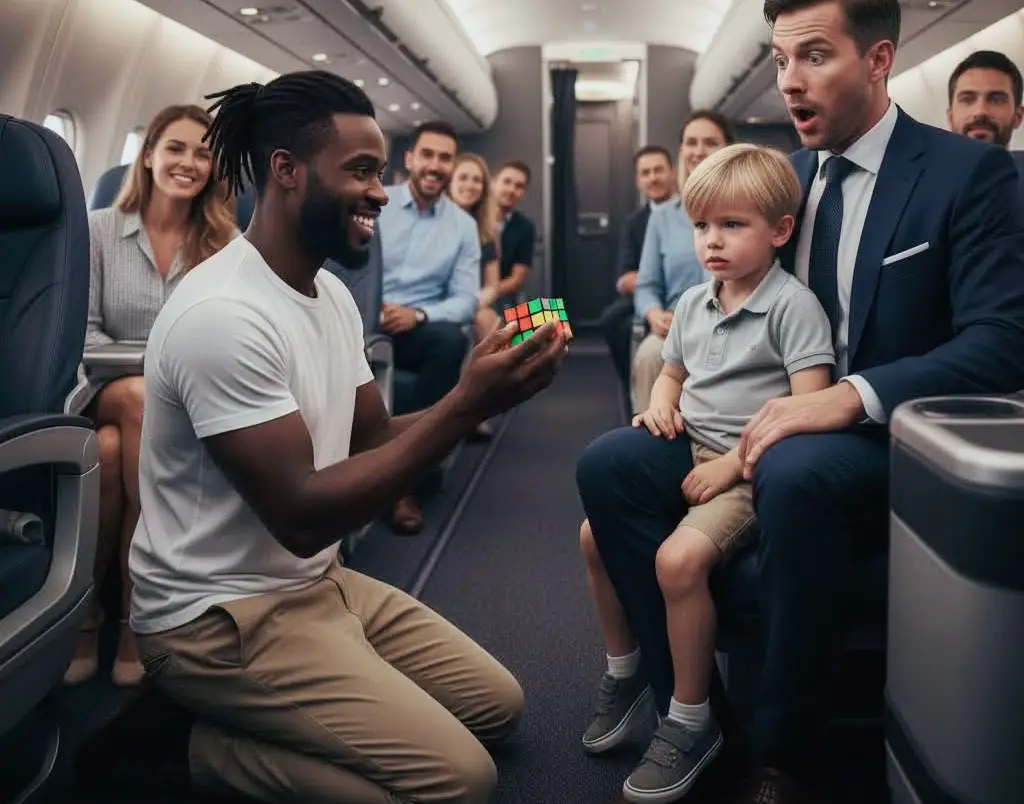 Сын миллионера с СДВГ кричал без остановки во время полёта — пока не встал темнокожий мальчик и не сделал то, от чего у всех в самолёте перехватило дыхание…
