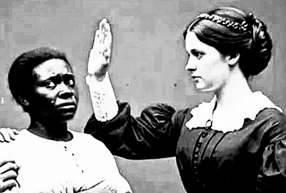 Когда ее сапоги коснулись пыльного двора, сцена перед ней была настолько страшной, что она остолбенела. Под палящим солнцем стояла чернокожая женщина, явно ослабленная и окатившаяся холодным потом от боли, пытаясь удержаться на ногах. Над ней нависал надсмотрщик, сжимая ее за руку с ненужной жестокостью, словно боялся, что она упадет или убежит, хотя было очевидно, что сил у нее нет. Самое ужасное — ее живот: женщина была беременна до последних пределов. Ее дыхание было тяжелым, прерывистым, глаза, наполненные слезами, молчаливо умоляли о помощи, понимая, что любое слово может лишь усугубить наказание.