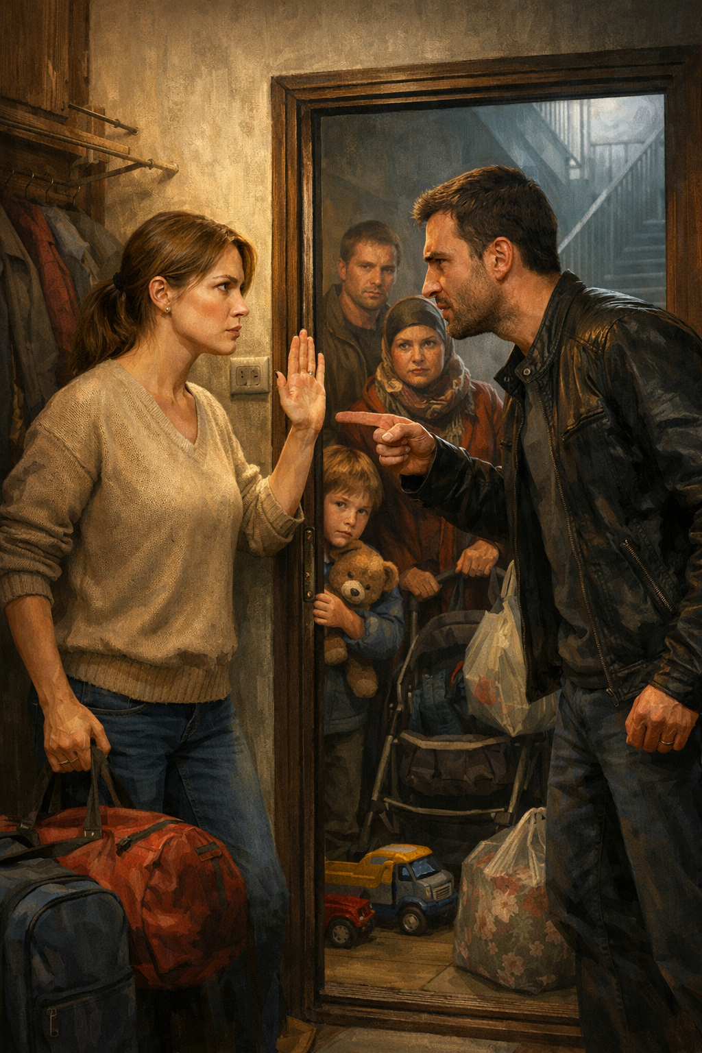 — Ты серьёзно сейчас? — холодно спросила она. — Сумки тяжёлые, дети на улице. Ты нас держать будешь на лестнице?