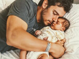 Лунный свет пробивался сквозь шторы и мягко освещал комнату. На кровати мирно спал Эрик. Но не только он. Рядом, укутанный в голубое одеяльце, лежал младенец. Совсем крошечный, едва различимый в складках ткани, но очевидно настоящий.