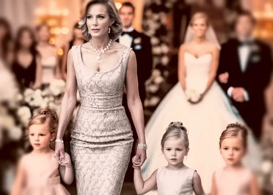 Рядом с ней — трое детей, одетых в одинаковые нарядные костюмы и платьица. Мальчик держал сестёр за руки, а они смеялись, глядя на толпу с любопытством. Вся сцена выглядела как из фильма: женщина, которая когда-то стояла на коленях перед жизнью, теперь шла прямо, окружённая любовью и достоинством.