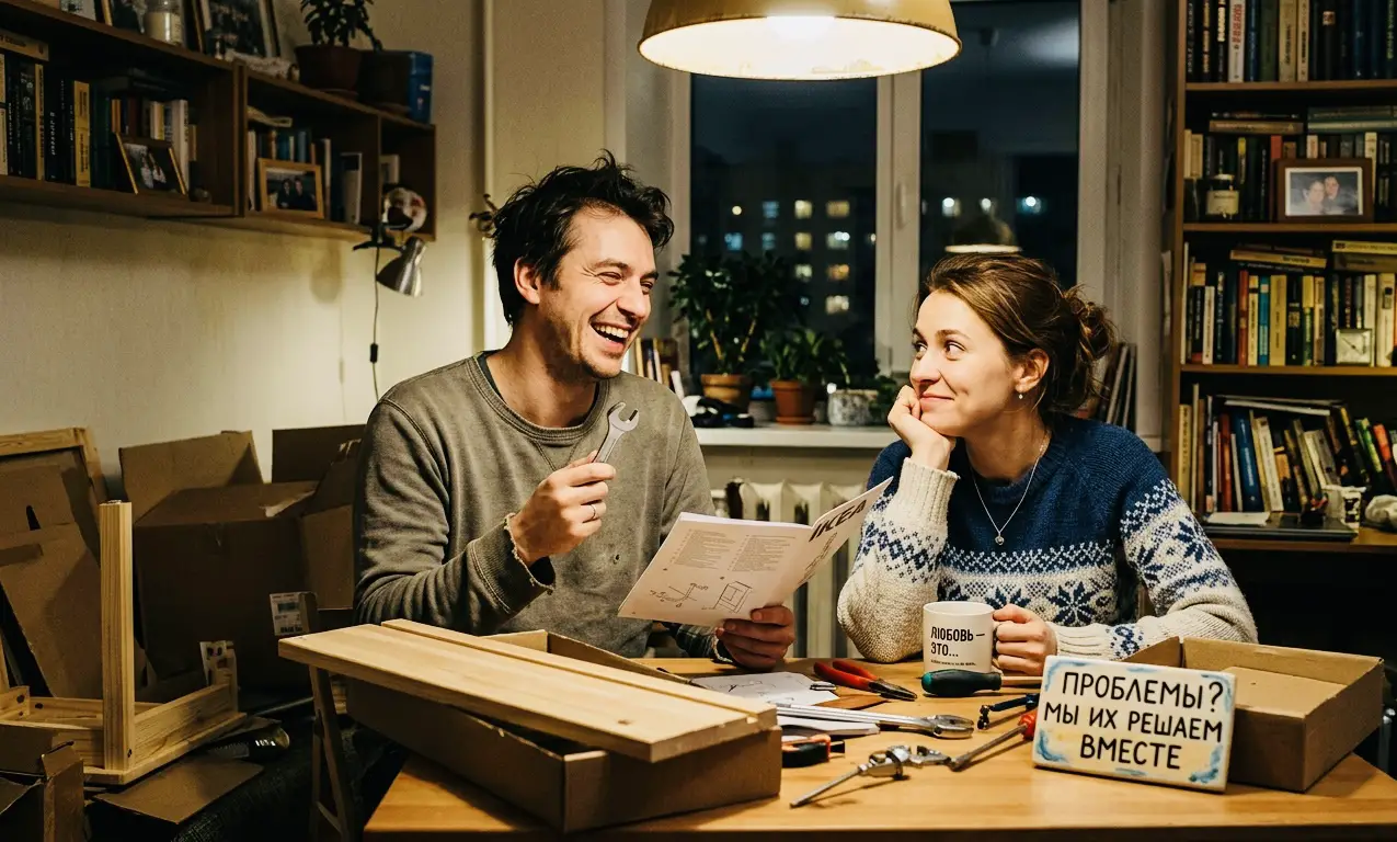 В начале отношений мы склонны играть роли. Он — рыцарь без страха и упрека, она — муза, вдохновляющая на подвиги. Но стоит паре съехаться, как декорации рушатся. Выясняется, что рыцарь храпит, а муза не всегда просыпается с идеальной укладкой и в хорошем настроении. Здесь и рождается первая комедийная ситуация: осознание реальности.