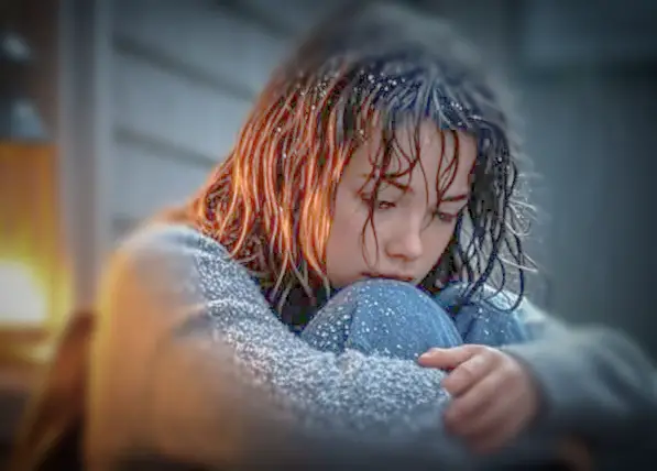 Лет семи или восьми. Совсем одна. Светлые волосы прилипли к бледному лицу, тонкие губы посинели от холода. Она дрожала всем телом, крепко удерживая лямки выцветшего розового рюкзачка — словно в нём хранилось всё, что осталось от её маленького мира. Подняла на Габриэля огромные серо-штормовые глаза — спокойные, почти странно ясные для ребёнка, пережившего бурю.