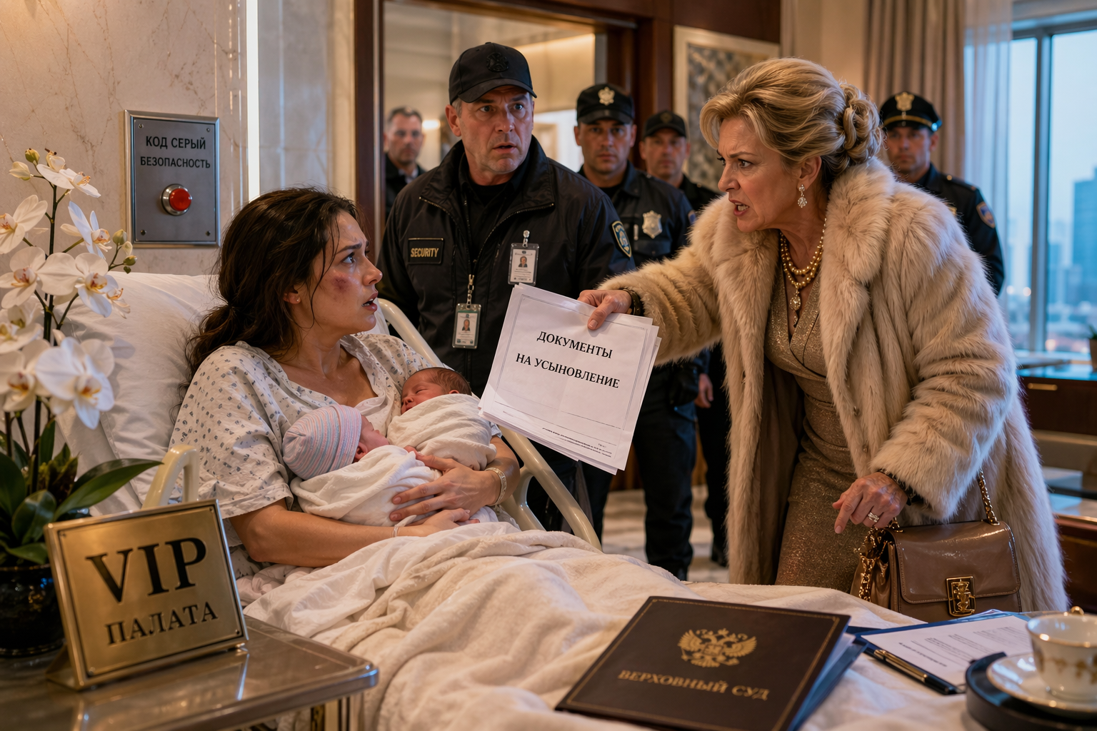 Уверенность свекрови рухнула. Её взгляд метался от меня к охране, затем к документам, лежащим на столе. Те самые бумаги об отказе от ребёнка теперь выглядели не как инструмент давления, а как улика.