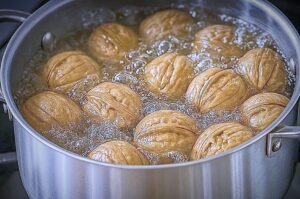Погрузите орехи в кипяток и варите около 5 минут, чтобы тепло эффективно уменьшило горечь.