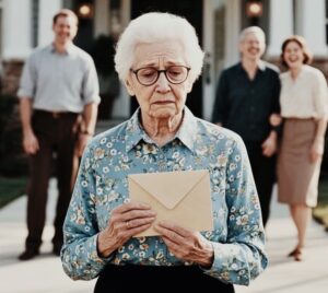 Перед ней — два её сына: уверенные, нетерпеливые, с лёгкой надменностью в осанке. Их галстуки были идеально завязаны, их взгляды — холодны и точны, как у отца когда-то.