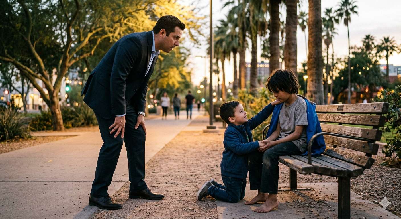 Матео Карденас привык держать всё под контролем: бизнес, личную жизнь, даже эмоции. Но однажды вечером, прогуливаясь по улицам Финикса, он столкнулся с ситуацией, которая выбила его из привычного ритма. Его пятилетний сын, Сантьяго, побежал к краю парка, где стоял незнакомый мальчик. Санти подошёл к нему с уверенностью, которая сразу насторожила Матео: