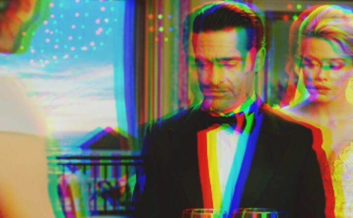 Улыбка осталась — но только на губах. Глаза замерли. Цвет ушёл со щёк. Он слишком быстро потянулся к бокалу. Слишком резко.