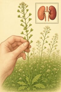 Пастушья сумка способствует естественному выведению лишней жидкости и токсинов из организма, улучшает работу почек и мочевого пузыря.