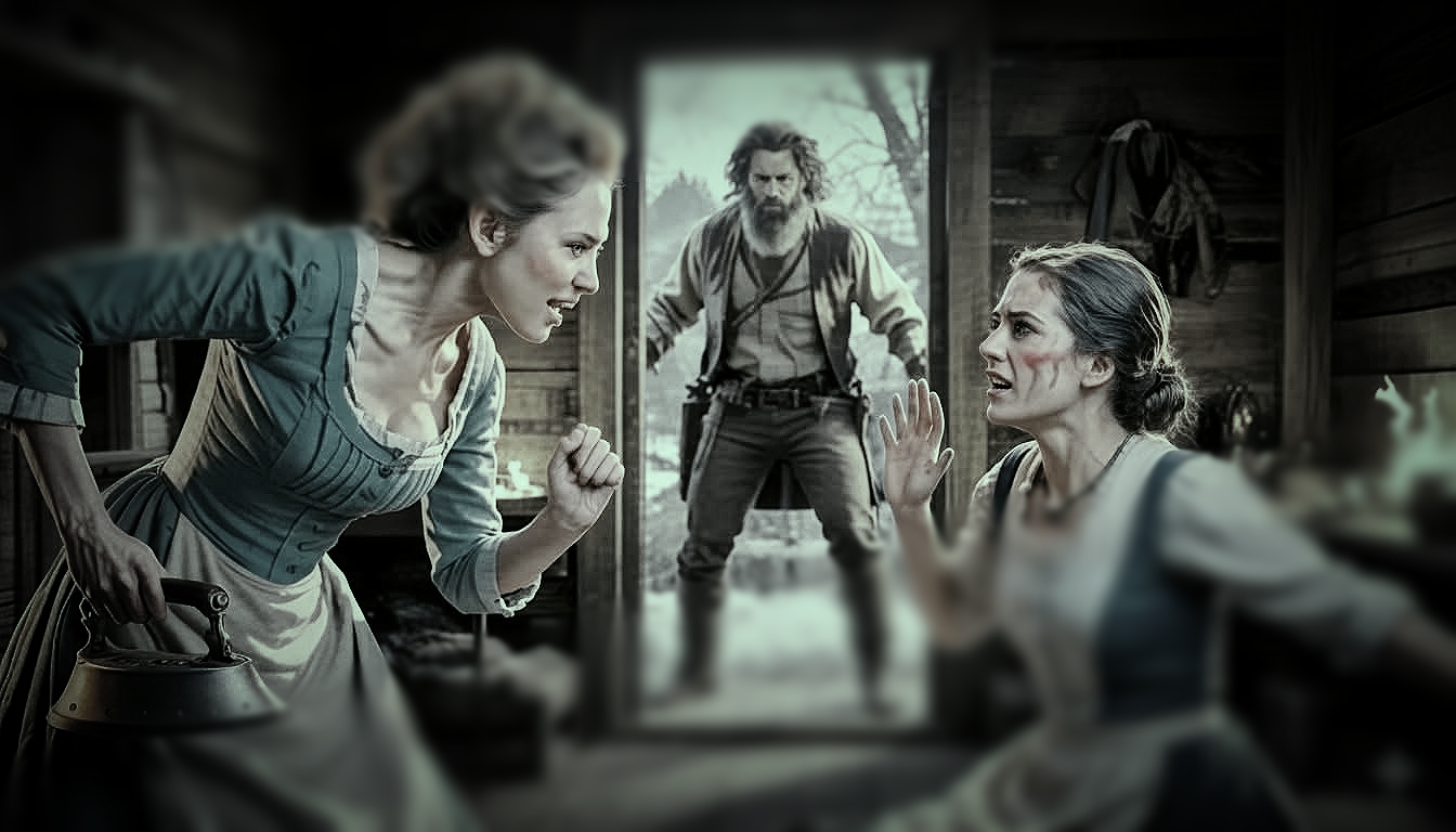 Калдер Бун стоял, не двигаясь, его взгляд был пронзительным, а плечи напряжены — готовые к любому движению Элеонор. Она сжимала утюг, раскалённый до бела, в дрожащей руке. Внезапно в её глазах мелькнуло удивление — никто до этого не вставал против неё, никто не смел оспорить её власть.