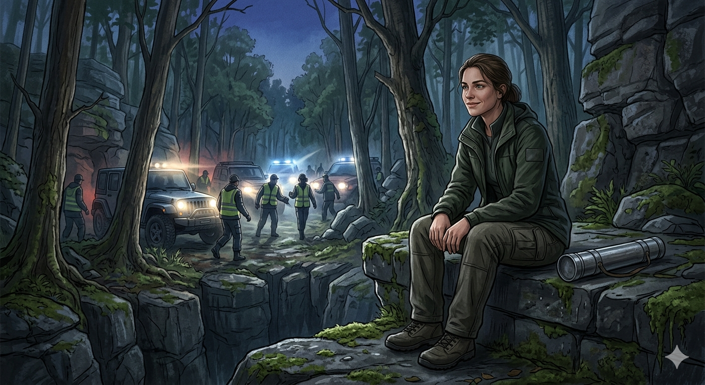 Лес, который ещё недавно казался бесконечным лабиринтом, стал сценой, где всё наконец стало на свои места. Люди, приехавшие по сигналу, работали чётко и без лишних слов.