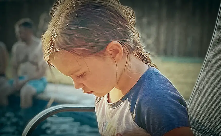 Когда семья моего сына пришла на вечеринку у бассейна, моя четырёхлетняя внучка отказалась надевать купальник и села в стороне, скрестив руки на животе, говоря, что у неё болит живот.
