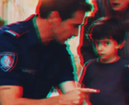 Она встала между ребёнком и полицейским, защитным жестом взяв мальчика за руку.