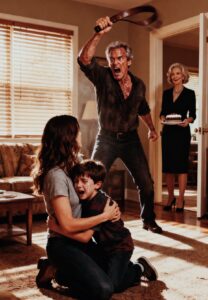 В его глазах вспыхнул огонь. У меня не было времени думать — только действовать. Ремень ударил сначала по моим плечам, затем ещё и ещё; удары становились всё сильнее. Рубашка порвалась. Боль пронзала тело; я кусала губу, чтобы не дать ей прорваться в крик. Я не могла позволить себе сломаться на глазах у сына.