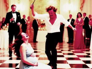 Музыка играла, голоса сливались в фальшивый хор восторга, но воздух становился всё тяжелее. Я стояла у стойки с напитками, пытаясь сделать глоток вина — просто, чтобы не упасть в обморок. Рука дрожала. Несколько капель красного вина скатились по бокалу и упали — прямо на ослепительно белый рукав смокинга Эдварда.