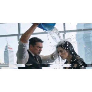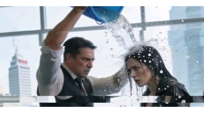 Вода пропитала пиджак, стекала по волосам, по лицу, забиралась в обувь. Холод смешался со слезами — не от слабости, а от публичного унижения, которое должно было сломать её морально.